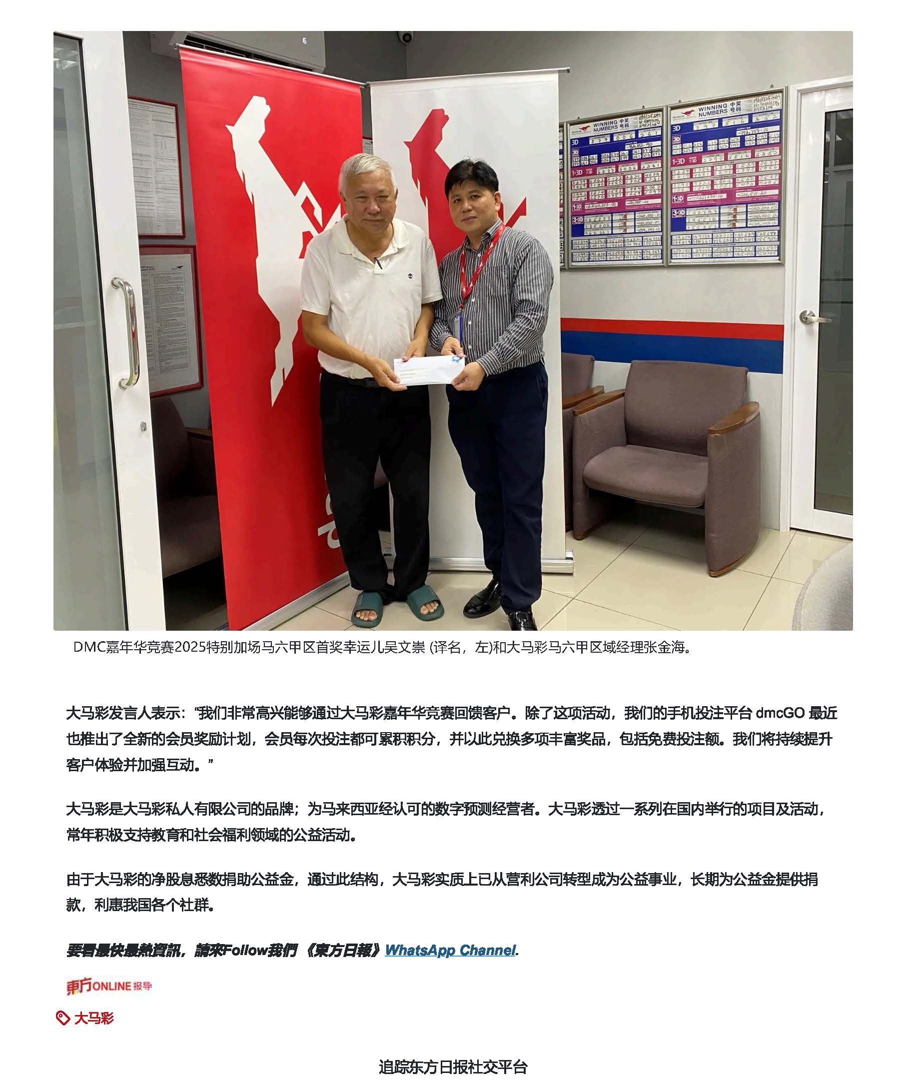 operator. On an annual basis, Da Ma Cai actively supports various causes in the areas of education