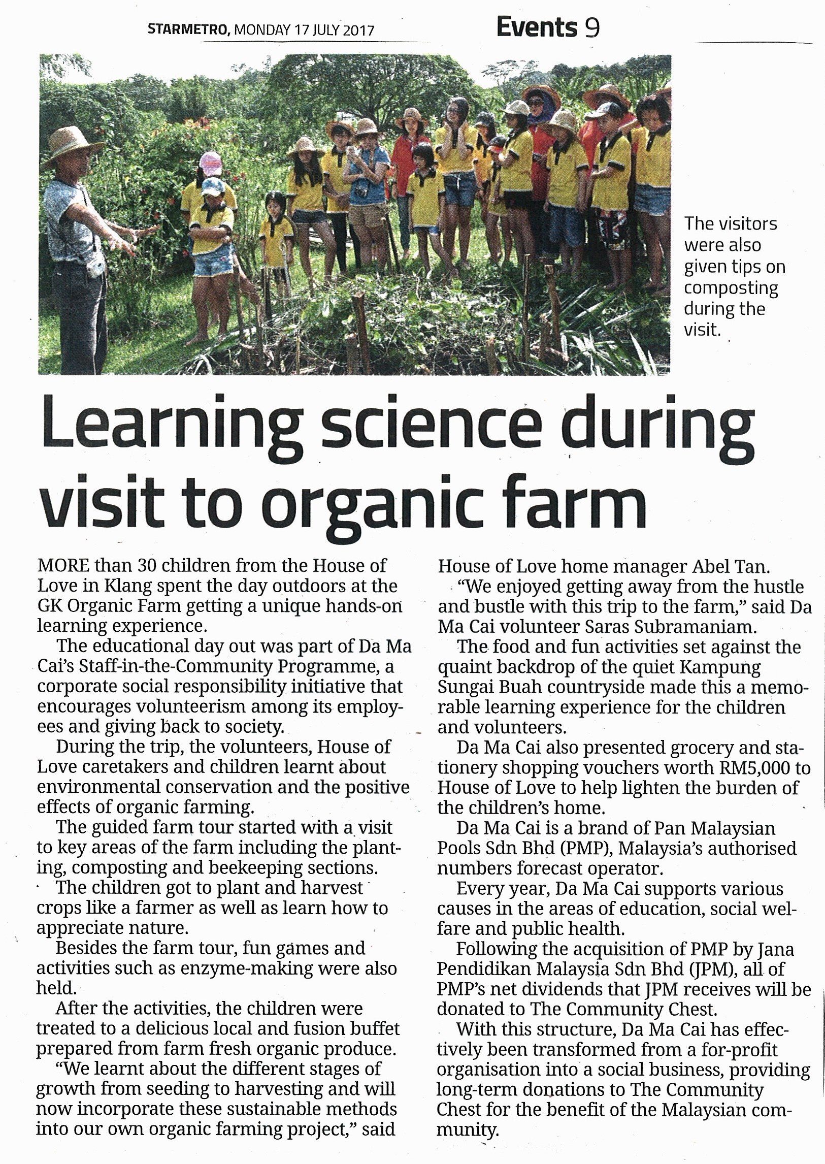 这一趟有机之旅是由大马彩志愿员工,透过其“职员融入社区活动”举办,旨在鼓励公司员工身体力行一同回馈社会。